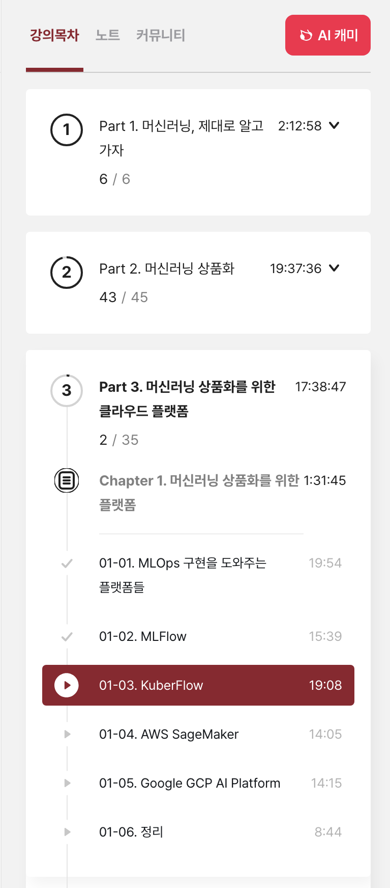 이번에는 머신러닝 상품화를 위한 클라우드 플팻폼 부분에서 MLops 구현을 도와주는 플랫폼들에 대해서 스터디를 해보았습니다. 머신러닝 모델의 전체 수명주기 (LifeCycle)을 효율적으로 관리하기 위해 사용되는 오픈소스 플랫폼인 MLflow의 4가지 기능들에 대해서 스터디를 해보았습니다.