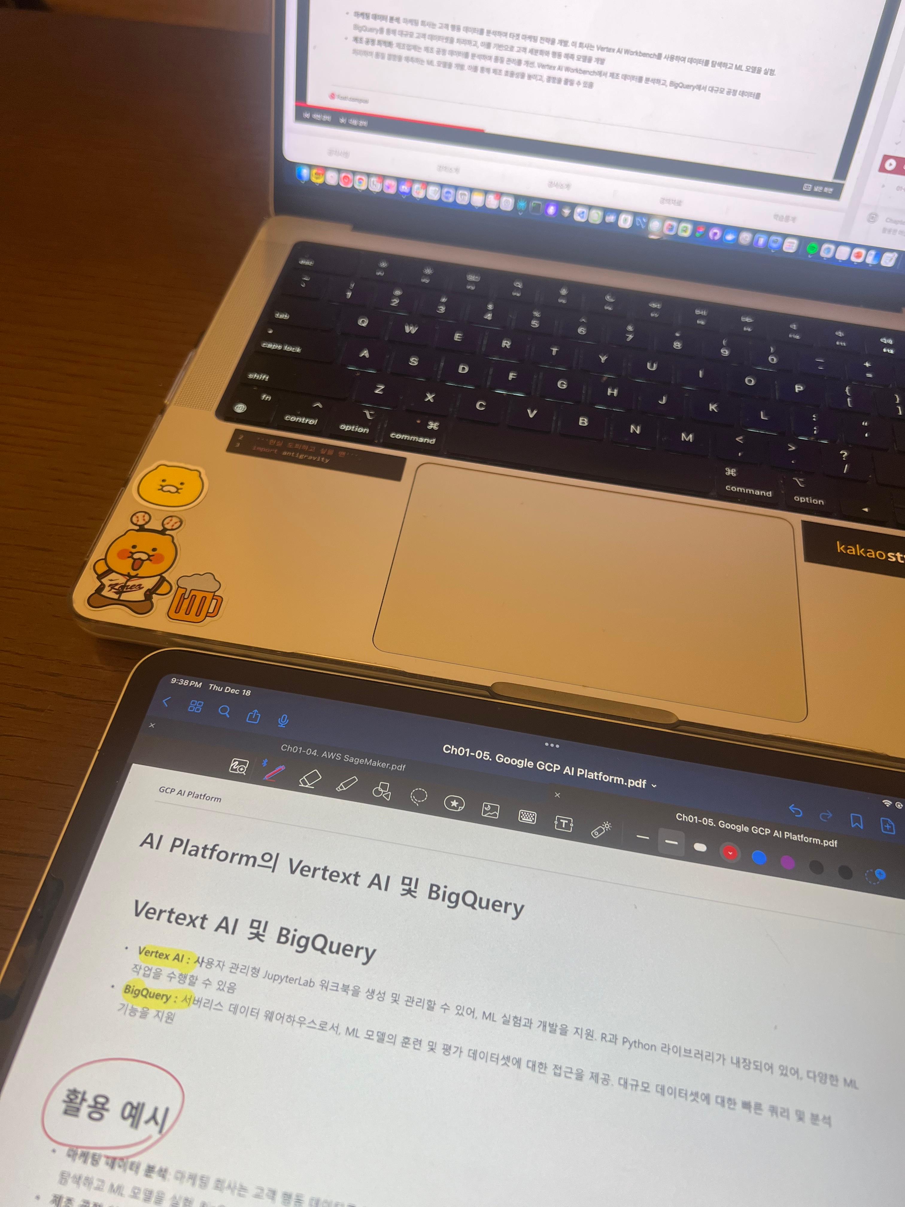 먼저 AI 노트북 & Training 기능은 주피터 노트북 환경을 클라우드 환경 내에서 바로 실행해서 코드를 작성하고, 고성능 컴퓨팅 자원을 사용할수 있어 실험을 할 수 있다는 것이 특징입니다. 그리고 Prediction Service는 훈련된 모델을 클라우드상에 배포하여 대규모 트래픽을 처리할수 있는 기능이라고 합니다. 또한 kubeflow pipeline을 안에서도 돌릴수 있다고 하며, 데이터 전처리-학습-배포의 워크플로우를 자동화 할 수 있다는 내용도 알게 되었습니다.