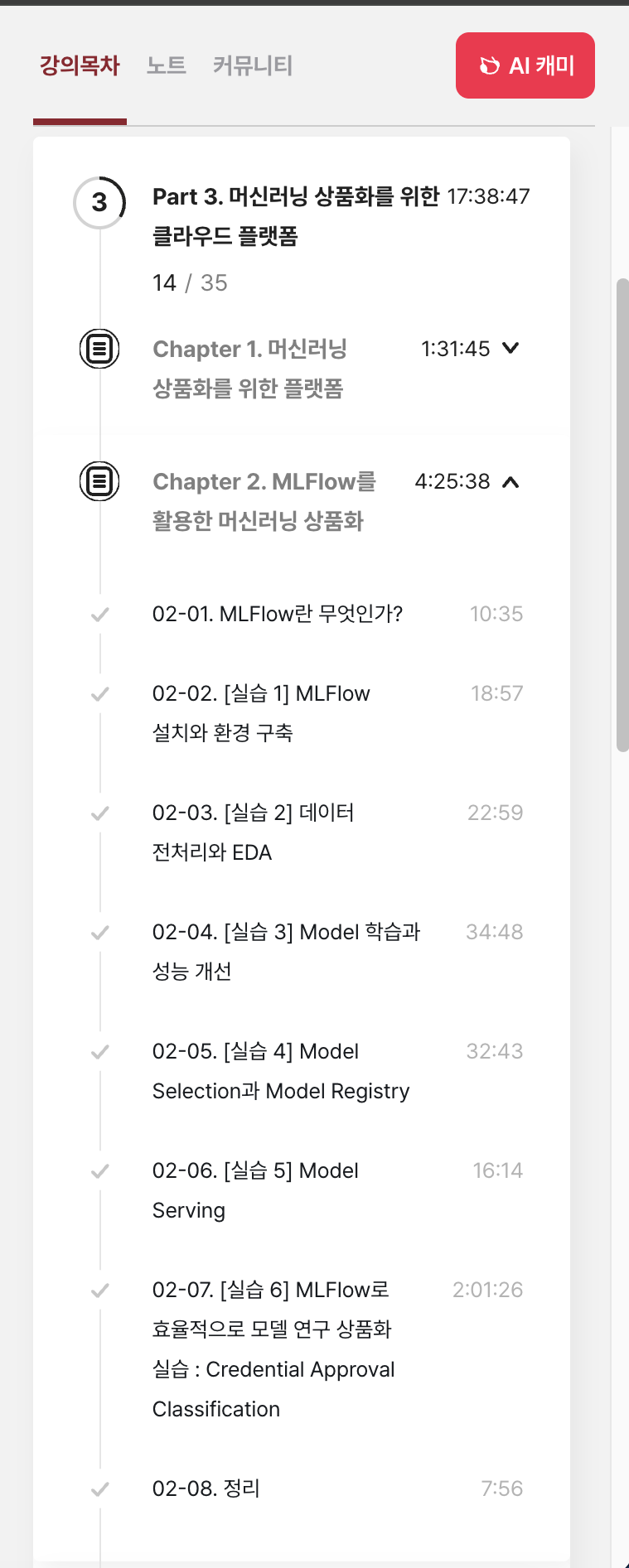 오늘은 MLOps 구축을 위해 주로 사용되는 플랫폼들 중에서 제일 먼저 사용되는 머신러닝 모델의 개발부터 배포까지 전체 수명 주기(LifeCycle)을 관리하는 오픈소스 플랫폼인 MLFlow(02-07) 실습을 해보면서 end-to-end 실습을 해본 내용을 토대로 한번 복습해 보는 시간을 가졌습니다.