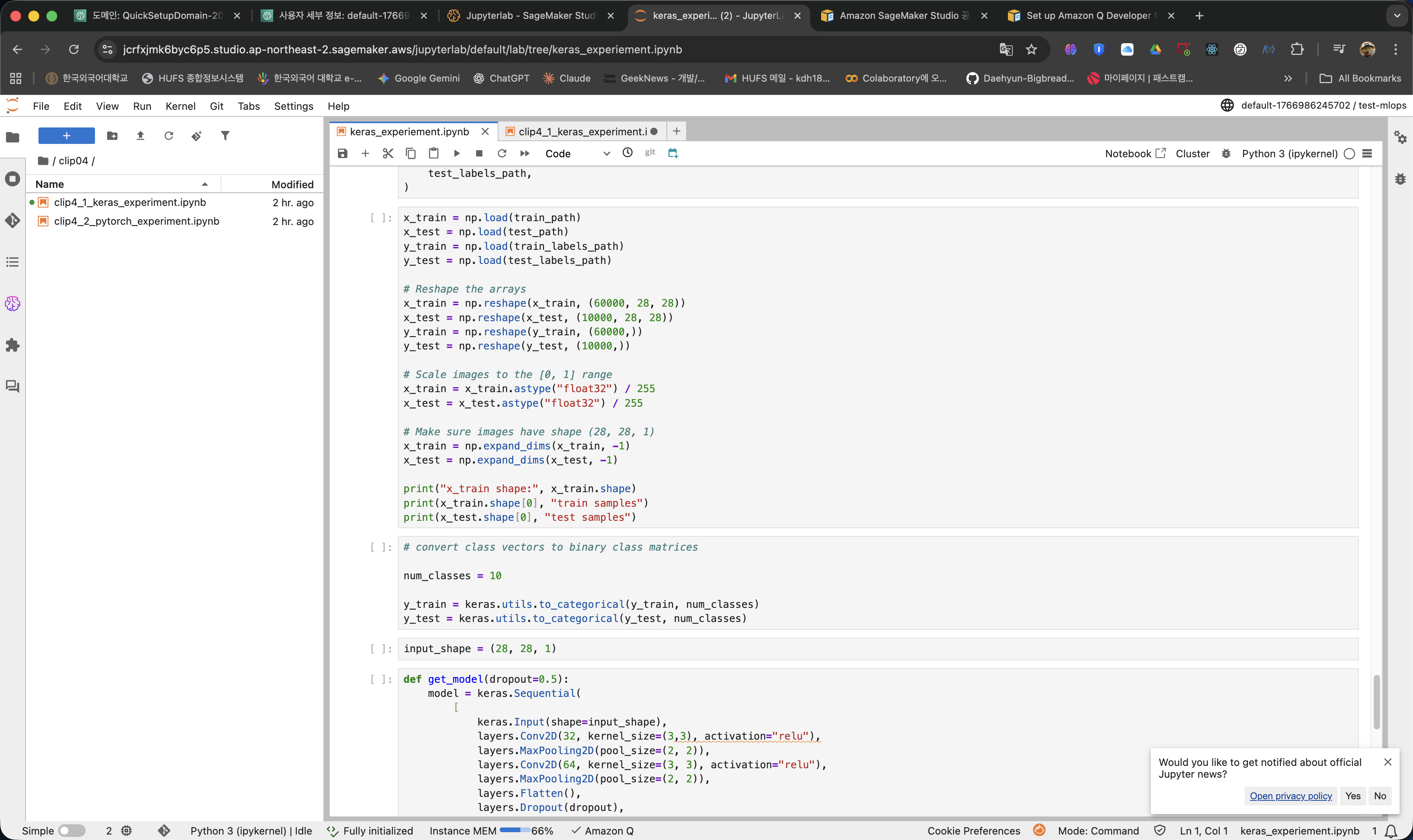 흥미로웠던 점은 개발환경과 학습환경 관리를 하나의 플랫폼에서 할 수 있다는 것이 매우 신기했고, 흥미로웠습니다. 이전에는 쥬피터노트북 커널이 종료되면 다 중단되었지만 이제는 학습 명령을 내리고 꺼도, 클라우드 서버 내에서 작업을 수행하고 결과를 s3에 저장시켜줌으로서 유용하게 호라용할 수 있다는 생각이 들어 앞으로 적극적으로 업무에 활용해 봐야겠다는 생각이 들었습니다.