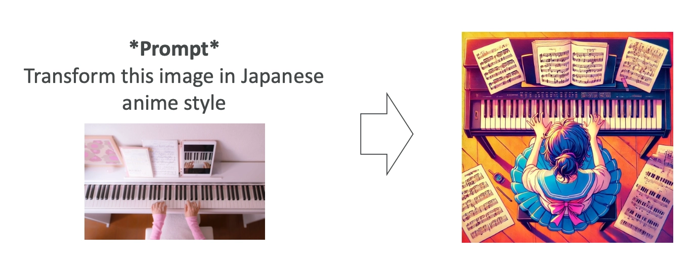 → “Transform this image in Japanese anime style.”
