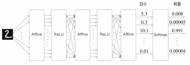 - Affine, ReLU ๊ณ์ธต์ด ๊ฐ์์ ๋ด๋ถ์์ Forward Propagation(์์ ํ), Back Propagation(์ญ์ ํ)๋ฅผ ์ฒ๋ฆฌํ๊ณ ์์ผ๋๊น, ๊ทธ๋ฅ ๊ณ์ธต์ ์ฌ๋ฐ๋ฅธ ์์๋ก ์ฐ๊ฒฐํ ํ ํธ์ถํด์ฃผ๋ฉด ๋์
