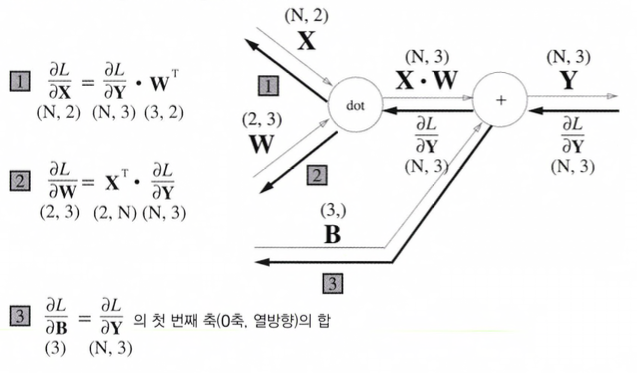 - backward()์์๋ ์๋ฅ์์ ๋ด๋ ค์จ ๋ฏธ๋ถ(dout)์ ๊ทธ๋๋ก ํ๋ฅ๋ก ํ๋ฆด ๋ฟ์