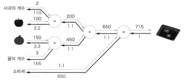 all_price = add_apple_orange_layer.forward(apple_price, orange_price) # (3)